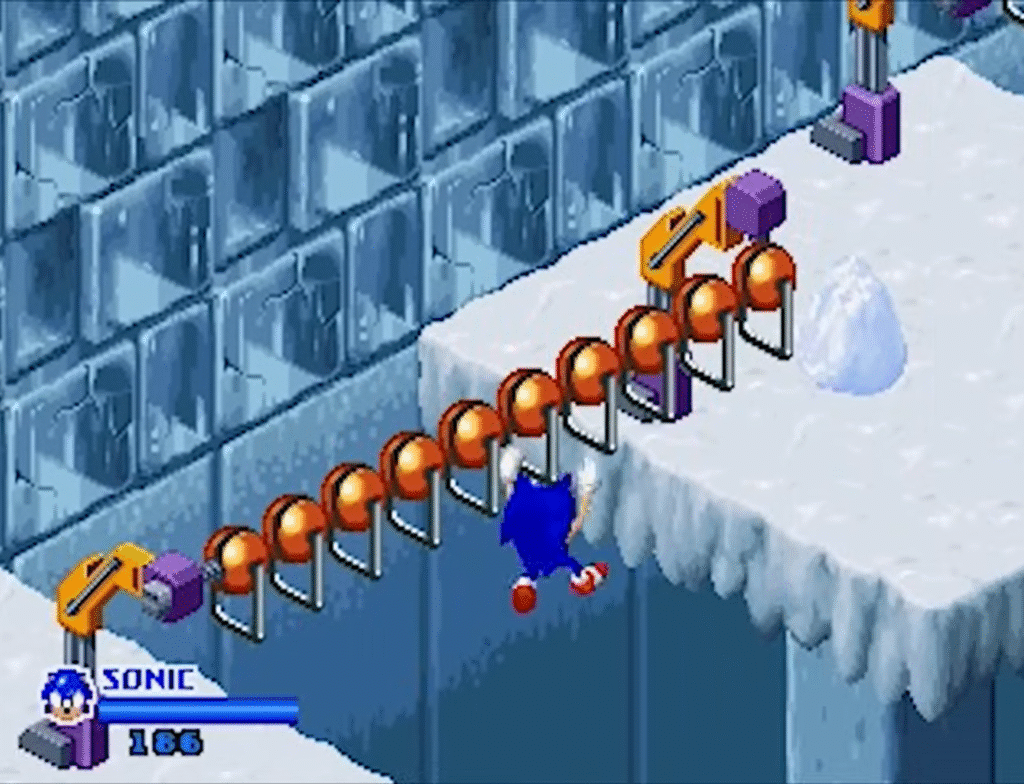 As for other things that made the game stand out, it’s notable for introducing two playable characters who never really took off in the Sonic-o-sphere: Ray the Flying Squirrel (who is easily mistakable for Tails at a distance) and Mighty the Armadillo, who you could almost describe as “We Have Knuckles At Home.”
