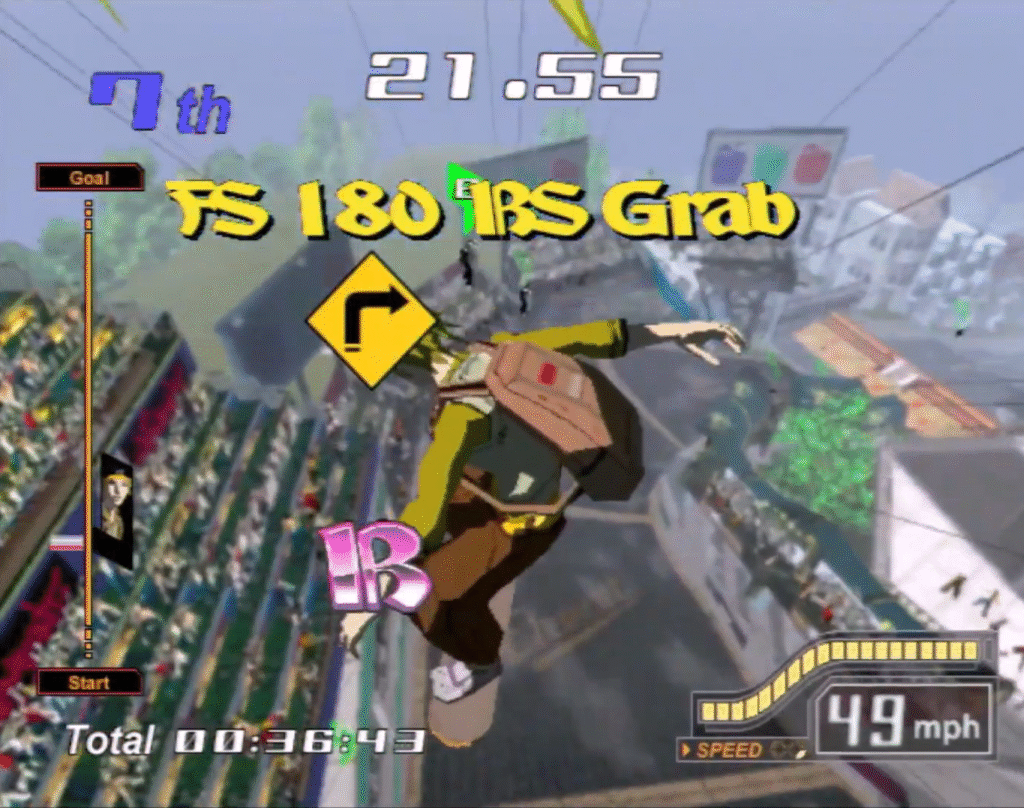 Gameplay-wise, it’s probably closer to something like SSX or Tony Hawk’s Downhill Jam than a proper Jet Grind Radio game, but it definitely has some elements and components that’ll remind you of DJ Professor K and pals — starting with the fact that its soundtrack is provided by Hideki Naganuma, the “skank funk” EDM maestro that gave both Jet Grind/Jet Set games their brilliant J-Pop-techno vibrato and flavor.